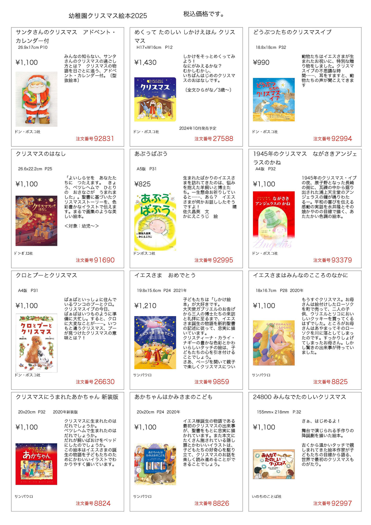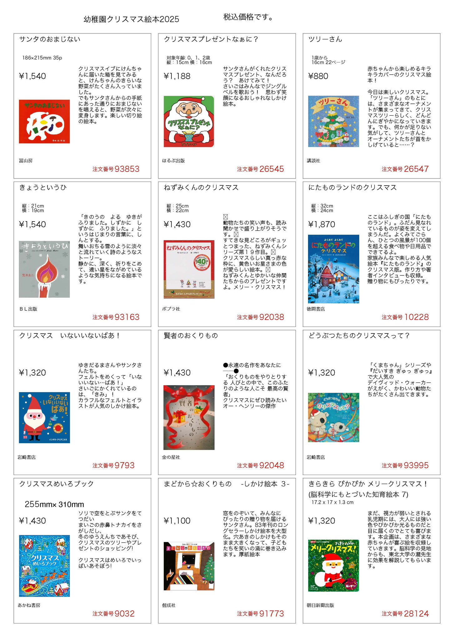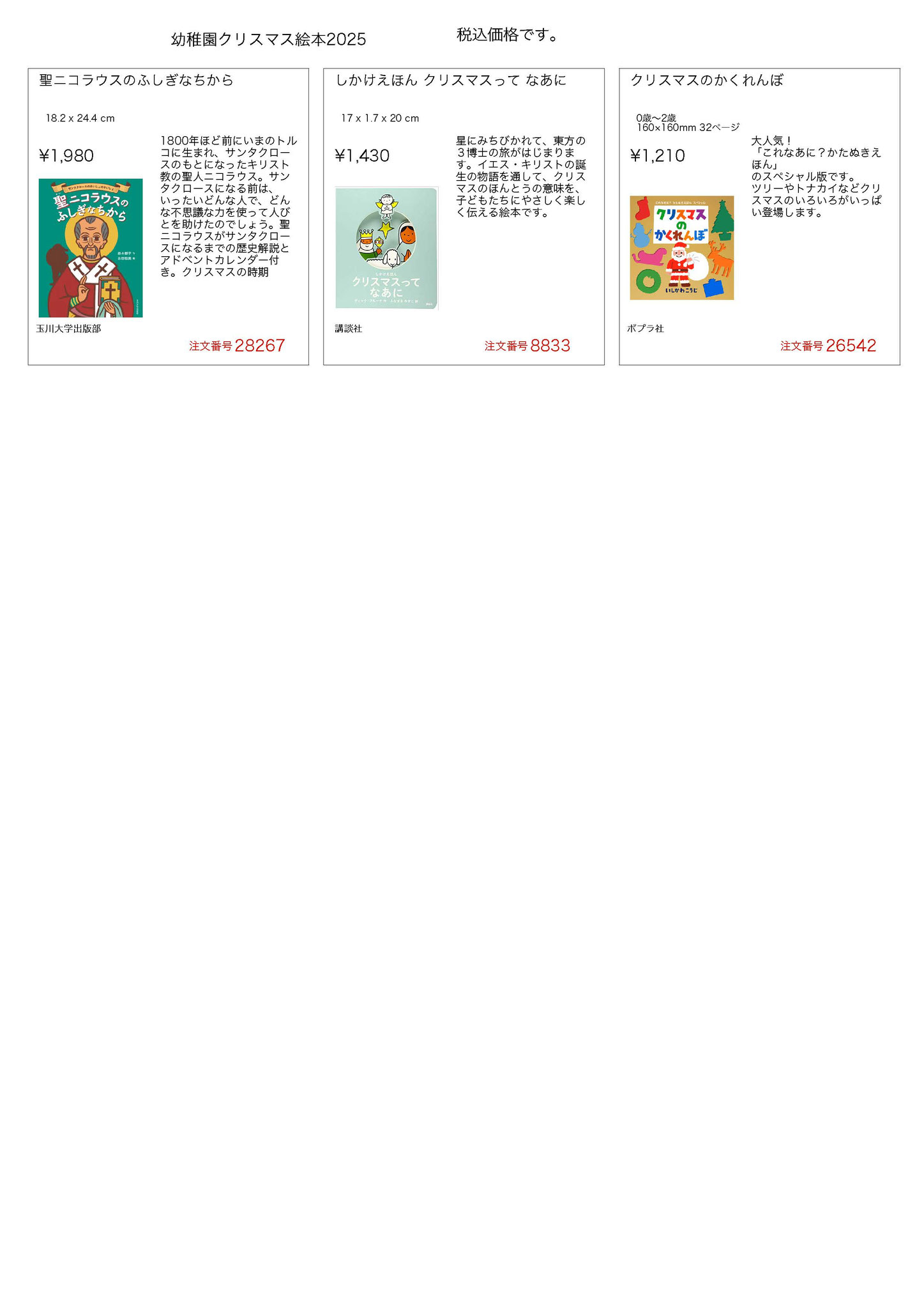 幼稚園カタログ クリスマス絵本