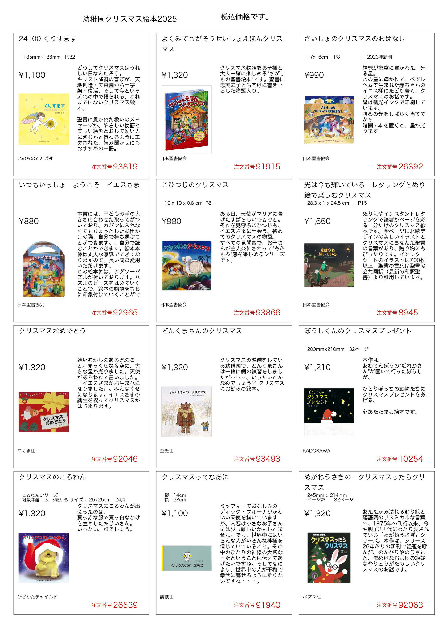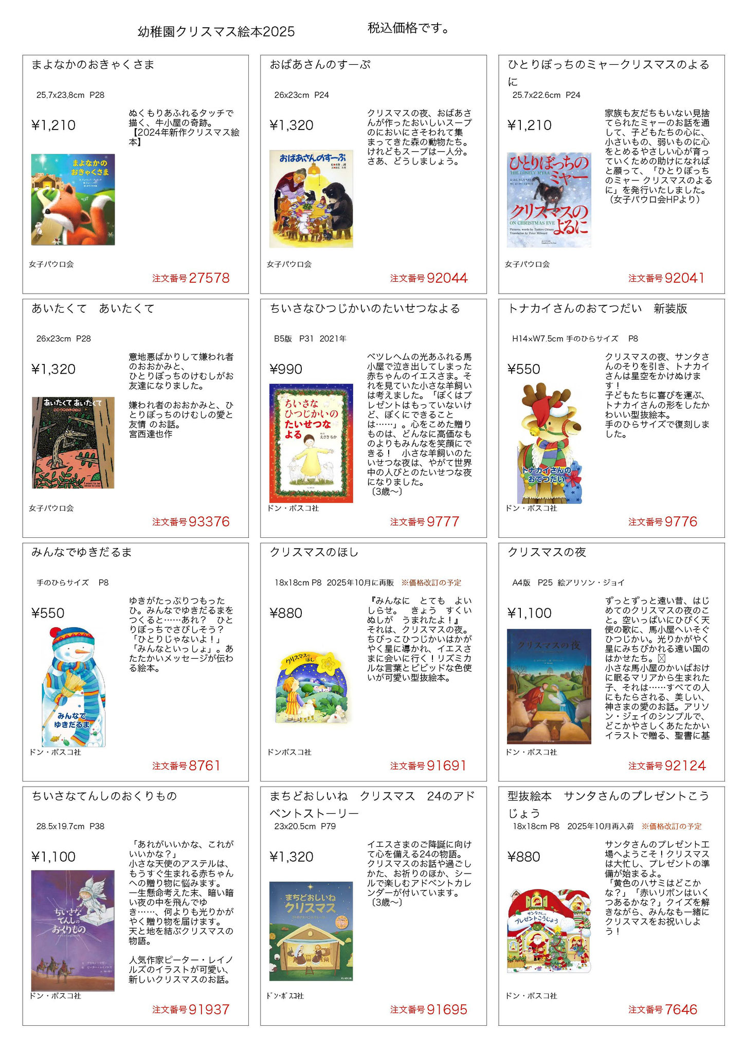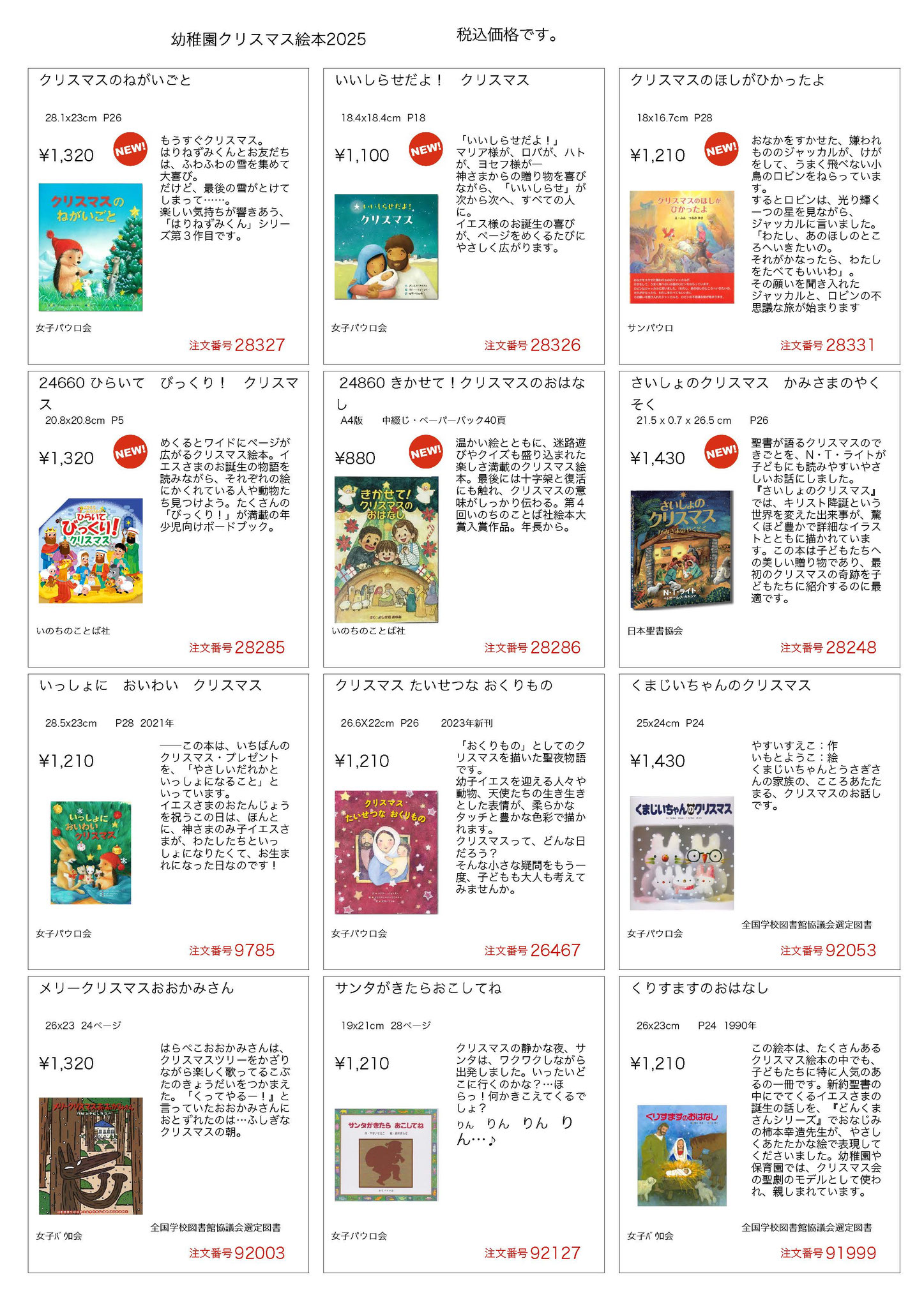 幼稚園カタログ クリスマス絵本